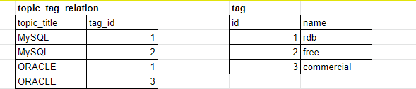 topic_tag_relation은 tag의 name을 알고싶은 상태로, JOIN이 필요한 상황이다.