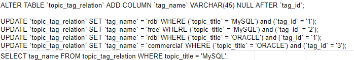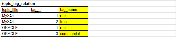중복을 허용하여 topic_tag_relation 테이블에 tag의 name을 넣는다면 JOIN을 하지 않고 표를 다룰 수 있게 된다.