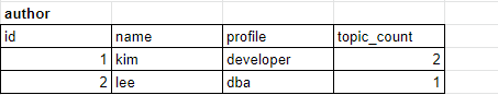 topic 테이블의 author_id 값들이 각각의 author_id 별로 같은 행동이 몇 개 있는지 카운트하면 되는데,