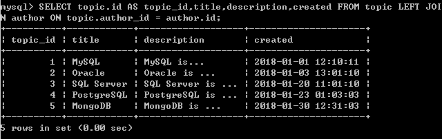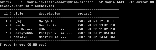 SELECT * FROM topic LEFT JOIN author ON topic.author_id = author.id;