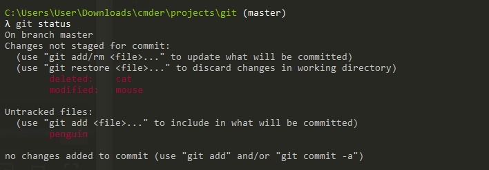 status로 명령어를 확인하면 수정된 파일과 untracked 파일을 확인할 수 있다.
