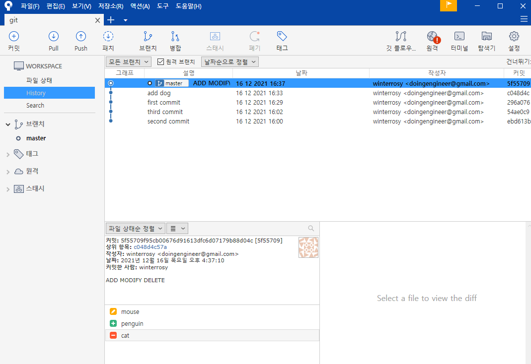 커밋 이름은 "ADD MODIFY DELETE"이다.