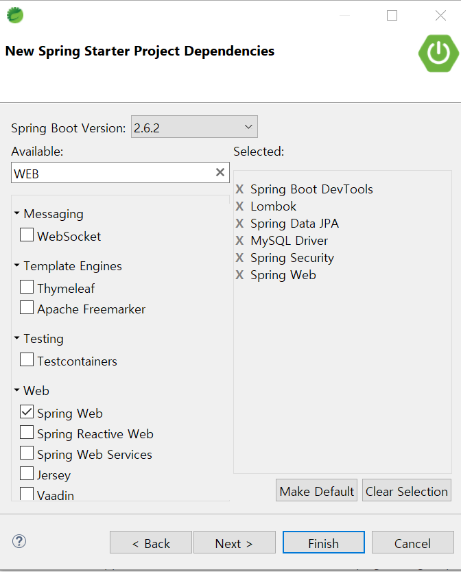 스프링 프로젝트는 다음과 같이 생성하였다.