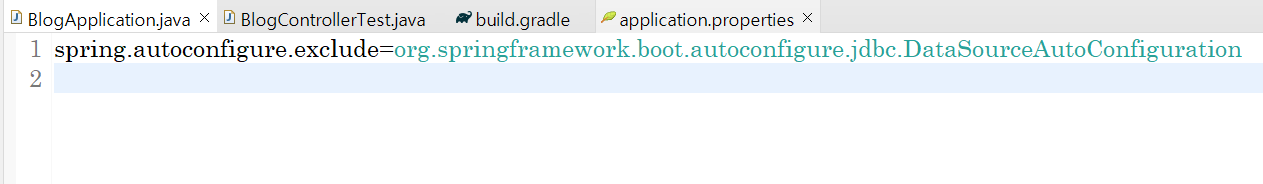 application.properties에 spring.autoconfigure.exclude=org.springframework.boot.autoconfigure.jdbc.DataSourceAutoConfiguration 문장을 추가하여 문제를 해결하였다.