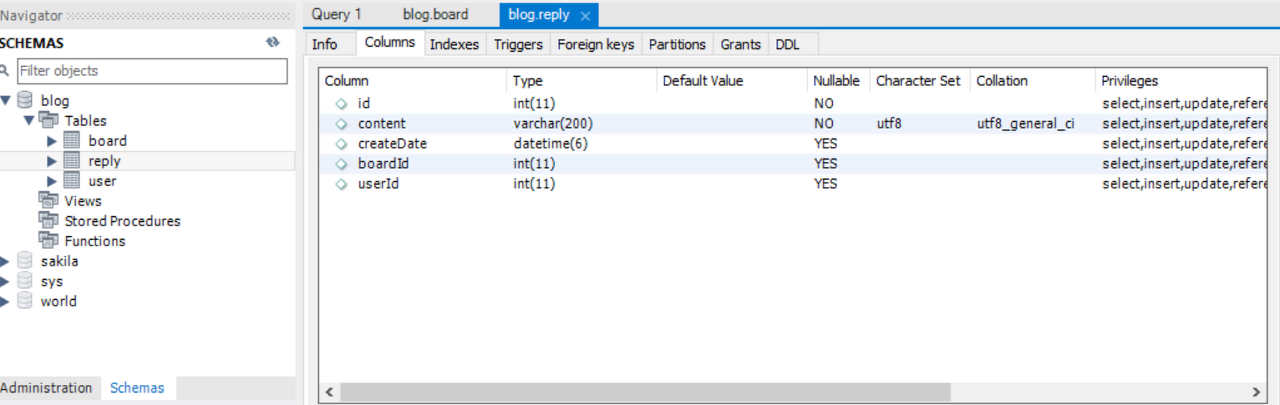 - Blog 테이블 만들기 (user, board, reply 테이블)