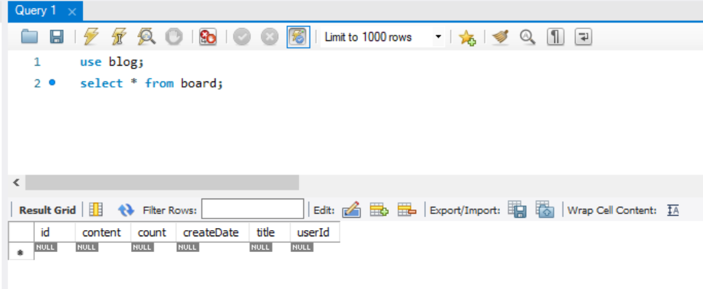 게시글 테이블이며 id, title, content, count, createDate를 받고