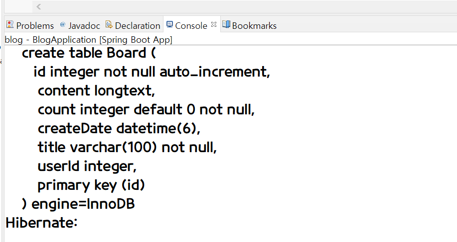 테이블이 생성되는지 확인하기 위해서는 먼저 ddl_auto가 create인지 확인한다