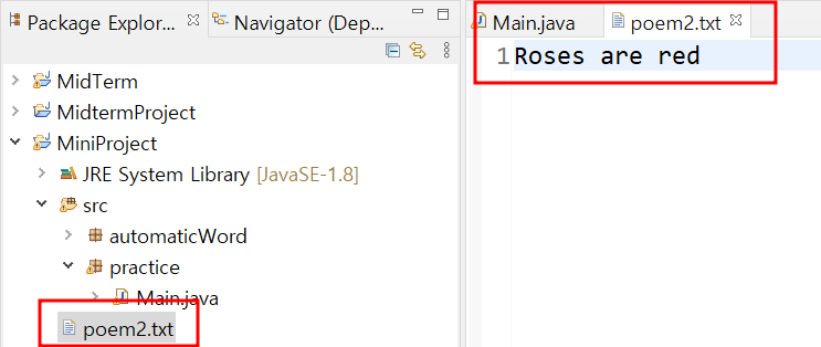 이클립스에 텍스트 파일 "poem2.txt" 을 생성하고 FileWriter로 파일의 경로를 적어준다.