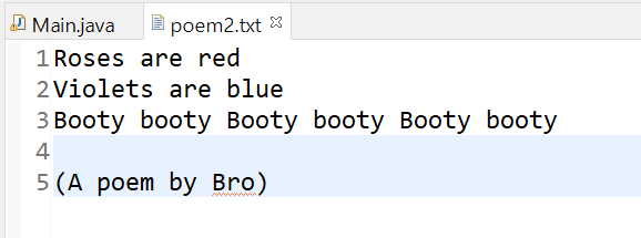 writer.write("Roses are red\nViolets are blue\nBooty booty Booty booty Booty booty\n"); //줄바꿈