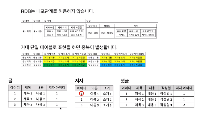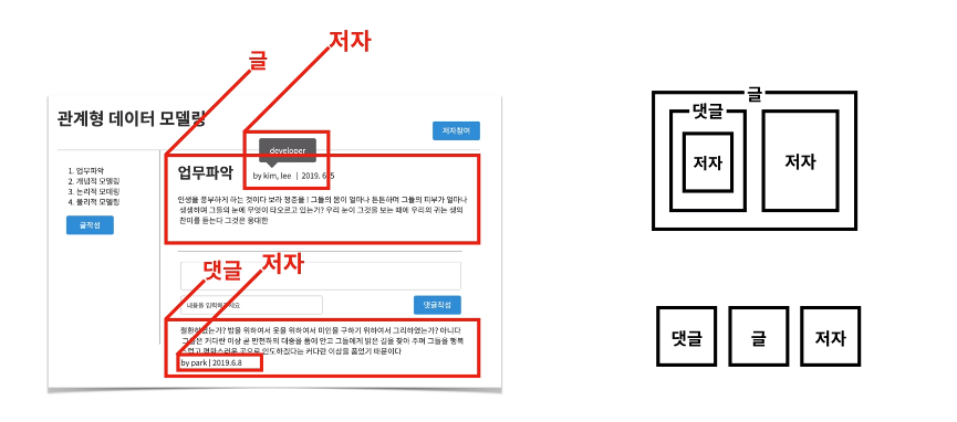 - 저자, 글, 댓글은 서로 관계를 가진다.