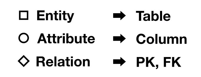 또한 ERD는 매우 쉽게 표로 전환할 수 있는 규칙들을 가지고 있다.