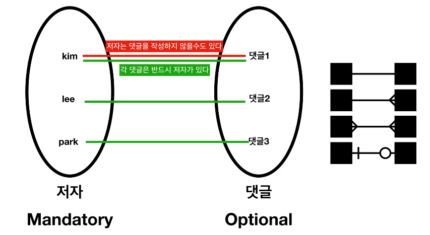 저자와 댓글은 Cardinality도 가지고 있다. 저자와 댓글이 1:N의 관계에 있다면 동시에 이렇게 표현할 수 있다.